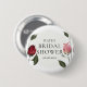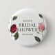 Um botão de chá de panela moderno, chic, com dois belos rosas sentados em um painel traseiro pintado segurando os detalhes do seu chá de panela em texto elegante. Projetado por Thisnotme©