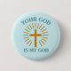 Seu Deus é Meu Deus, este design cristão apresenta uma cruz de ouro com texto azul dizendo "Seu Deus é Meu Deus".
