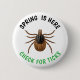 A Lyme Disease prevention button with a picture of a deer tick on it and text that says, 'Spring is Here, Check for Ticks."