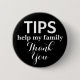 Dica Obrigado Botão Pinback Personalizado De Texto. Dicas Ajudam minha família, Obrigado. Talvez Dicas paguem seu aluguel? paguem sua hipoteca? forneçam uma casa? paguem pela escola? Use esta modelo fácil para personalizar o texto para suas próprias necessidades. Você pode personalizar o tamanho e a forma do seu botão.