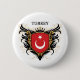 Design legal da crista com cores turcas da bandeira nacional. Substitua o texto "Turquia" com seu próprio slogan para criar um presente turco personalizado original do orgulho. Ideias personalizadas do presente: #1 pai turco, mamã, vovô, avó, tio, tia, esposa, marido, [o outro membro da família]; Orgulhoso ser turco, rochas de Turquia.