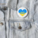 Expresse o seu amor e apoio às pessoas da Ucrânia com este coração azul e amarelo da bandeira da Ucrânia com a mensagem Slava Ucraniano, que se traduz por Glória à Ucrânia. Ele é mostrado aqui em um botão de pin back personalizado. Oferecido em vários tamanhos. Apoie a Ucrânia com este design de coração brilhante!