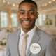 Um botão de excelente para o seu janto de ensaio de casamento e outros eventos, este design apresenta "Usher" escrito com uma bela letra de ouro com uma seta cardíaca por baixo. No fundo está um modelo para adicionar o nome. Personalize seu botão hoje!