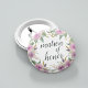 Identifique os jogadores-chave no seu chá de panela com nossos botões florais elegantes e doces. O botão apresenta flores cor-de-água roxas, rosa e violeta, e folhas verdes, com a "matrona de honra" inscrita em script de caligrafia.
