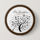 Um Botão "Family Keepsasawn" com uma árvore preta de arte estêncil segurando 20 nomes. Você pode ajustado 20 nomes de membros da família neste botão. Isso seria perfeito para os partidos da Reunião Familiar, Dia de as mães e Natal.