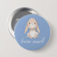 a blue & white baby bunny theme button for your boy baby shower or any other occasion