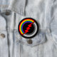 Círculo de arco-íris dividido ao meio por um símbolo de raio formando dois arco-íris. A bandeira do arco-íris LGBT é colorida de um lado, em tons de cinza do outro. Simbolizando metade e metade. Bissexualidade.