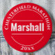 Uma crachá para um Marshall de eventos. Altere o texto para seus detalhes. Marshall crachá. Crachá oficial. Vermelho e branco.
