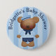 Personalize este botão bonitinho com o nome que a mãe deve ser. O botão da diversão tem um urso vestido de marinheiro. O fundo é um design de faixa azul bebê. Favoritos de chá de fraldas de excelente para todos os seus convidados. graphicsandbits/kristiw