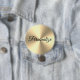 Botão grande de pinback metálico brilhante. Pinos personalizados para aniversário, Natal, festas corporativas, Véspera de ano novo, casamento, evento, celebração etc. Faça seu próprio crachá de nome para amigos, família, convidados, funcionários, clientes, colegas de trabalho, clientes, damas de honra, madrinha de casamento, matriz de honra, floristas, mãe da noiva etc. Disponível em tamanhos pequenos e extras grandes. Modelo de tipografia de script elegante com brilho ouro.