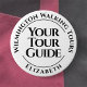 Seu Guia Turnê. Um crachá para um Guia Turístico oficial. Altere o texto para os detalhes de sua empresa. Crachá do Guia Tour. Crachá oficial do Guia Tour. Viagem e turismo. Texto preto sobre fundo branco.