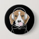 O design apresenta uma ilustração de um beagle relaxante vestindo fones de ouvido e soprando a borbulha rosa. Com a sua cor de fundo favorita personalizada, ela faz um botão giro, engraçado e único de retrocesso para os amantes de cachorros.