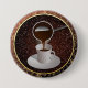 Botão com um design artístico de café turco sendo derramado em uma xícara. Fundo mosaico castanho com ouro de borda rolada.