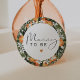 Este pino de botão apresenta laranjas limpas de aquarela e uma fonte bonita escrita à mão com o ditado "mamãe a ser". Este botão neutro por gênero é o acessório perfeito para o seu chá de fraldas ou revelador de gênero.
