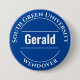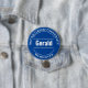 Um crachá de botão para um membro funcionarios incluir a organização, além do nome cristão da pessoa. Altere o texto para seus detalhes. Crachá universitário. Crachá Oficial do Funcionarios Universitário. Azul e branco. Edite a design para alterar a cor do crachá.