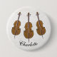 Crachá cello personalizado. Um enchedor de estoque divertido no Natal ou presente de aniversário para um celista afiado. A design apresenta três cellos e pode ser personalizada para incluir o nome do músico. Cartões de correspondência também estão disponíveis nesta adorável design musical.