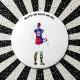 Vibrant watercolor-style illustration of a female volleyball player holding a ball, painted in bold splashes of pink, blue, and yellow. The design captures the energy and motion of the sport, making it a lively accessory for volleyball fans and athletes.