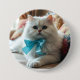 Bóton Redondo 7.62cm Gato branco-cômodo com Arco azul