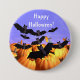 Um alfinete com minha divertida imagem original de morcegos voando de abóboras com texto personalizável "Feliz Dia das Bruxas!"