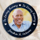 Honre o seu amado com um botão personalizado de funeral do memorial fotográfico. Este botão único de manutenção do memorial é o presente perfeito para você, família ou amigos para prestar tributo ao seu amado. Esperamos que seu botão memorial traga paz, alegria e memórias felizes. Cite "In Loving Memory" (Em Memória Adorável). Personalize com a foto favorita e o nome. Perfeito para celebrar eventos de vida e serviços de memórias. COPYRIGHT © 2020 Judy Burrows, Black Dog Art - Todos Os Direitos Reservados. Botão Memória Foto Memorial de Amor Azul Funeral