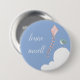 um texto branco sobre azul no botão de tema nuvens com pipas e pássaros para um chá de fraldas de menino ou menina