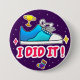 Diversão "Eu fiz Crachá" para dar a crianças que acabaram de aprender a amarrar seus cadarços. Este crachá metálico de 3" tem um fundo roxo.