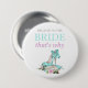 Mude o texto para transformar isto num botão de casamento, noivado ou festa de solteira. Azul e rosa turquesa. Calçado e travesseiro de satin com anéis e um motivo rosa.