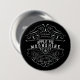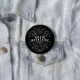 O botão na moda pinback para os amantes da lua apresenta a etiqueta fictícia do macaco Apple Pie Moonshine em cinza branca/clara sobre fundo preto.