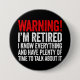 Bóton Redondo 7.62cm Warning I'm Retired I Know Everything