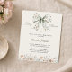 An elegant soft ivory background, decorated with a floral bow in muted green and muted pink. Personalize and add a name and party details. TExt: Baby in Bloom.