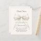 An elegant soft ivory colored background, decorated with a large bow with pearls. Personalize and add a name and party details.
