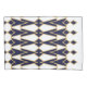 Esta fronha tem um design de arte de triângulos e diamantes que se parecem com arcos em azul e ouro.