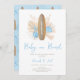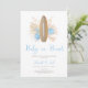 Garoto Aloha! Este convite 'Bebê no Conselho' é o convite perfeito para o chá de fraldas para o seu chá de fraldas temido do surf. A prancha colorida à terra e as palmas em bege e marrom com a palha de conchas azuis e estrelas-do-mar é perfeita para um chá de fraldas temático do oceano.
