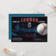 Este convite foi feito para um jovem que está fazendo aniversário e que ama o jogo de beisebol. O design é limpo, simples, mas bonito, mostrando que este é orgulhosamente o aniversário de um menino e destacando o belo esporte do beisebol.