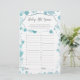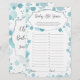 Este cartão de jogo de chá de fraldas apresenta um script moderno sobre o fundo de pontos de folha azul aqua, perfeito para um chá de criança.