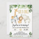 Meninos Wild One Foliage Safari Convite de Aniversário Procurando um belo convite de aniversário para animais safari de um menino selvagem? Este design apresenta quatro animais aquarelas, um elefante, leão, rinoceronte e girafa, assim como uma folhagem verde. Este convite é uma forma fofa de convidar os seus convidados selvagens para a sua festa de aniversário de safari.