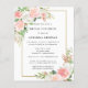As rosas cor-de-rosa e as flores brancas brilhantes da hydrangea estão aninhadas em folhas verdes macios para criar arranjos florais elegantes que decoram uma espumante armação de ouro que rodeia seus detalhes do Luncheon Bridal. Este item é parte da Coleção de Chás de panela Blush Pink e White Floral.