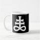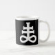 Aprecie sua bebida da escolha com o branco dobro clássico na caneca branca decorada do Brimstone símbolo preto. O símbolo do Brimstone foi usado por Anton Szandor LaVey na parte superior das 9 indicações satânicas na bíblia satânica.