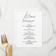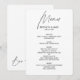 Menu de casamento com script simples com texto preto alterável impresso em fundo branco