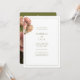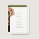 Moderno e moderno com a sensação de vintage. Este adorável convite de casamento apresenta um buquê de sotaques volutuosos de rosa contra o fundo branco-chico e verde-oliva. O conjunto de fontes contemporâneas exalta uma elegância na moda moderna. Personalize com o site de casamento e os detalhes do RSVP no fundo.