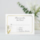 A placa RSVP de resposta ao casamento elegante é feita em branco, com gráficos de um quadro fino de tom dourado e uma linhagem branca e dourada, no canto inferior esquerdo da placa. O texto preto é perfeitamente personalizável para atender às suas necessidades de casamento. Perfeito com a nossa coleção de casamento da Lily.