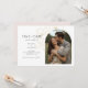 Esse casamento moderno e minimalista salva a data das cartas achatadas que contêm uma foto de casal de boho, delicada imitação de elementos florais de ouro e um conjunto contemporâneo de fontes em preto-jato. O detalhe da flor é repetido no verso contra um fundo cor-de-rosa pálido. Este design é contemporâneo e chique. Perfeito para o na moda e casal elegante.
