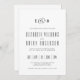 Em direção ao topo do convite estão os monogramas de primeiro nome da noiva e do noivo separados por um símbolo de e-mail elegante.