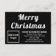 Feliz Natal! Um dos feriados mais comemorados do ano. É também uma das melhores estações para anunciar sua empresa ou promover seu nome de marca para clientes ou clientes. Preto e cartão plano de tamanho pequeno com saudação de Natal que você pode personalizar carregando o logotipo da sua empresa, digitando seu nome, endereço, número de telefone, e-mail e site. Personalize-o e use-o para saudar seus clientes ou clientes neste Natal e como material de marketing para anunciar sua empresa ou promover seu nome de marca. Você também pode usá-lo como um acessório dos materiais de embalagem de seus produtos. Cartão de Natal personalizável que você pode usar para criar reconhecimento de nome de marca. Você pode usá-lo em dezembro ou Natal em julho. Verifique a aparência após carregar o logotipo e digitar textos. Se a aparência lhe agrada, você pode colocar seu pedido agora. Se você precisar redimensionar e reposicionar o logotipo e as mensagens para ajustado nesta placa ou no tamanho que você escolherá, ajuste na ferramenta design. Você também pode alterar a cor do plano de fundo, a cor da fonte e o estilo da fonte na ferramenta design. Feliz Natal! Desejando mais vendas neste feriado.