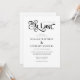 Nosso casamento chegou no último convite de casamento. O convite de casamento preto e branco minimalista com tipografia de espirais estilizadas de glifos expressa o sentimento por casais que tiveram de adiar um casamento. Convite de casamento elegante e moderno com texto casual para o casal que organiza o casamento juntamente com as suas famílias.