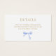 Esses bonitos cartões de cerimônias de detalhes de casamento apresentam detalhes do seu site e código QR para ajudar os convidados diretos. O modelo inclui texto personalizado chic em cor dourada escura contra fundo branco de na moda. A trendy blue ribbon ilude um tom alegre e uma elegância juvenil. As iniciais do casal lado a lado na parte traseira.