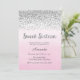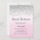 Doce convite de dezesseis aniversários com design do brilho da prata do falso e fundo cor-de-rosa da aguarela do ombre.