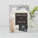 Comemore a notícia alegre de sua gravidez com nosso cartão de anúncio de gravidez. Apresentando uma fotografia ultrassônica/sonográfica, folha de eucalipto, um conjunto para bebês, blocos de madeira e um conselho alfanumérico personalizável, esta carta é a forma perfeita de compartilhar seu entusiasmo com os entes queridos. As palavras "Em Breve" acrescentam um pouco de antecipação a este charmoso cartão. Faça seu anúncio especial com estilo e elegância com este cartão de anúncio de gravidez.