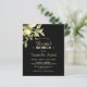Esta design do Chá de panela de Orçamento Preto contém um ramal de limão com folhas verdes brilhantes e vários limões. O texto contrastante de cor branca-limão e amarela clara é perfeitamente combinado com um fundo preto elegante. No verso deste convite de Bridal Brunch há um padrão de ramos de limão. Personalize e aproveite!