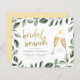 Um tema clássico com um toque moderno. Este design apresenta um quadro de verde-aquarela pintado à mão, um guião de ouro com letra de mão e uma ilustração de dois copos de champanhe. Os detalhes do seu chá aparecem na tipografia sans serif moderna com a data em uma fonte de script. Cartões invertidos a uma cor amarela pastel. Clique em "Personalizar" e altere o texto nas caixas de modelo para fazer o seu! Como parte da seleção orçamentária no Zazzle, esta folha de papel não é um tamanho padrão de convite. Se quiser que este design num cartão de convite o encontre na nossa loja ou utilize o Zazzle Make Machine para o transferir para o produto da sua escolha. Produtos correspondentes e novos designs disponíveis em nossa loja.